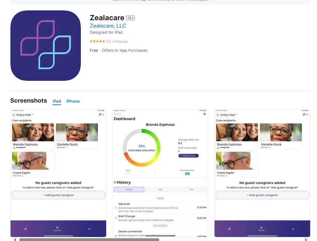 Incontinence doesn't have to be a guessing game. One of the only smart brief options for teens and adults on the market is from Zealacare. As an authorized dealer with Zealacare, we are pleased to present these smart briefs as a way to restore dignity to folks dealing with incontinence. When used in conjunction with the Zealacare smart sensor the user is able to monitor saturation levels via the app. Users can set alarm notifications to notify their cellular device when the brief reaches a level set by the user. These Zealacare briefs are disposable and provide exceptional comfort and protection. When used with the Zealacare Smart Sensor and app, users receive a discreet notification on their phone when a change is needed, or when a loved one needs to be changed.